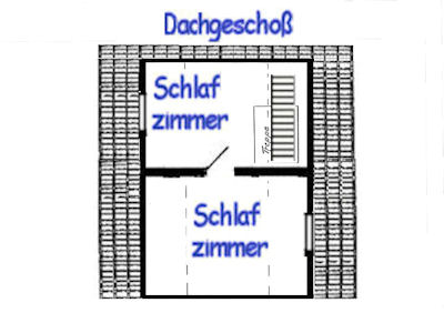 1 Schlafzimmer mit Doppelbett und 1 Schlafraum mit 3 Einzelbetten im Dachgeschoß.